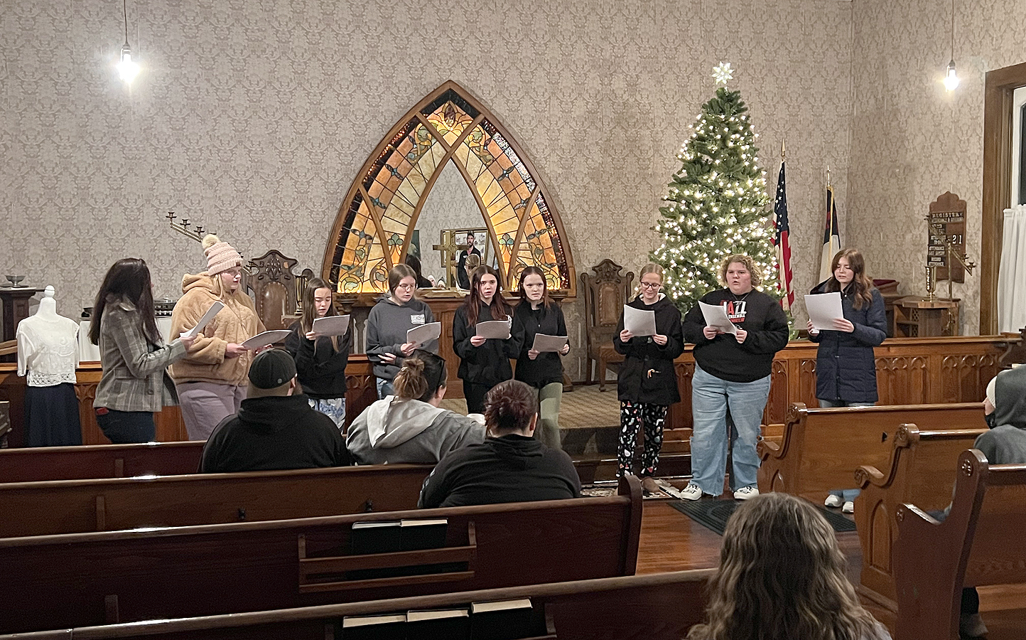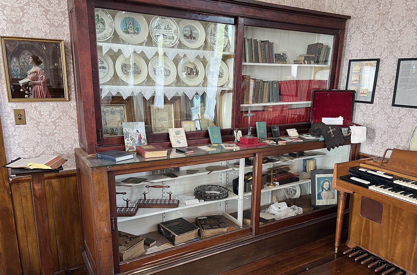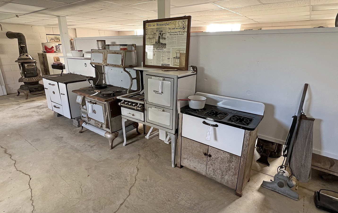 The Spaulding, Iowa United Methodist Episcopal Church was built in 1878 and moved to the village in 1970. There are items from several other local churches on display in the sanctuary. There is a display of kitchen stoves, and laundry equipment in the church basement. There is also a display of equipment that was used at the KSIB radio station.