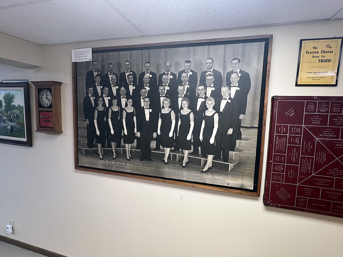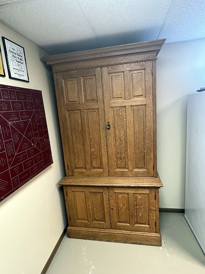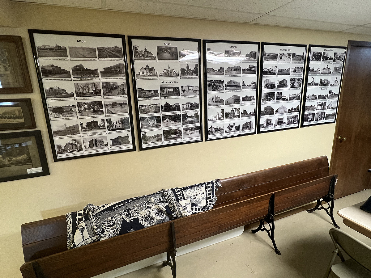 The Heritage Room is located in the basement of the Edaburn House. The room is used for board meetings and program presentations and is available for rent to other clubs and organizations. Also in the room is a large collection of photos from all the towns in Union County, player piano, and showcase of advertising memorabilia .