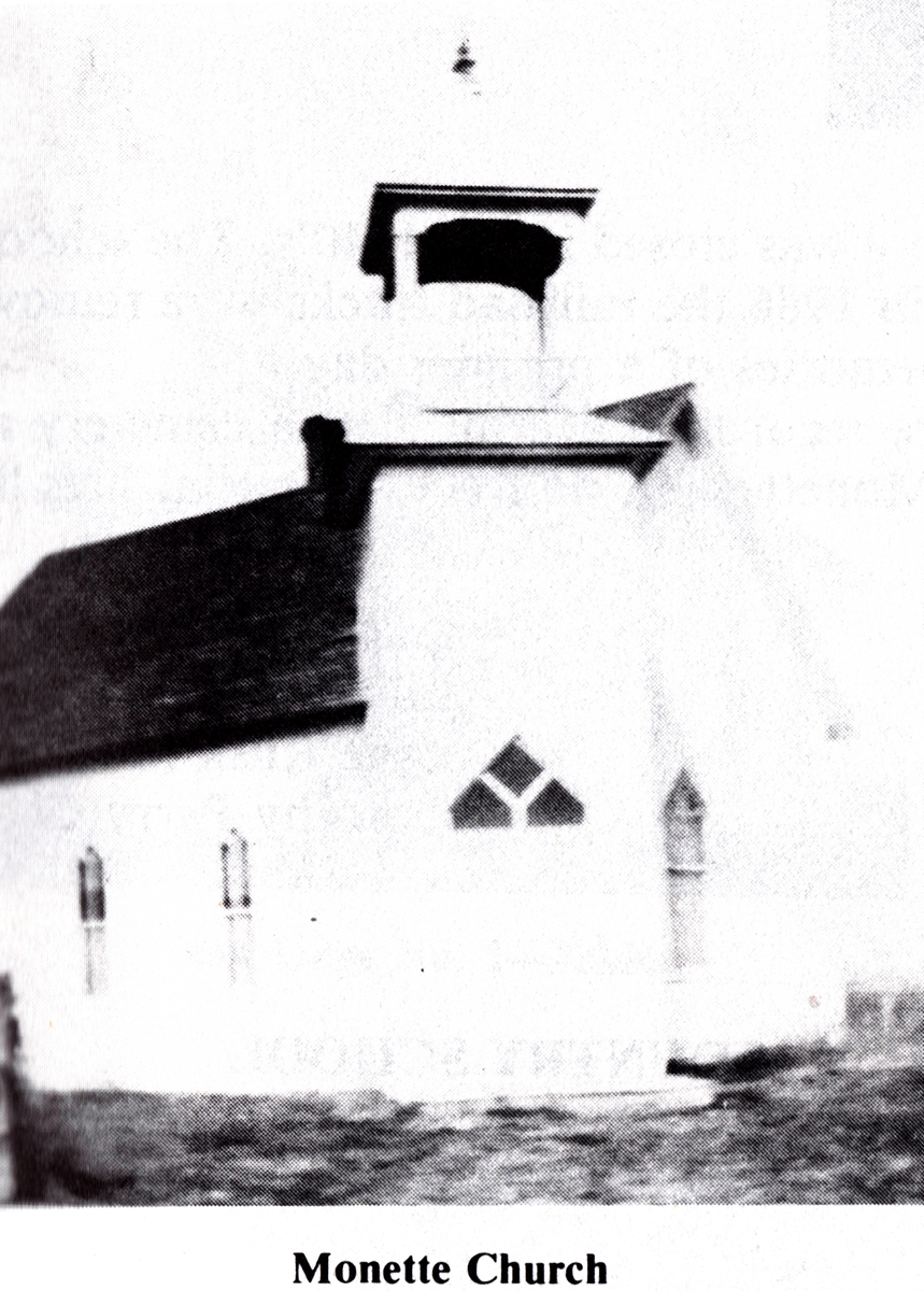 Very little information was found for the United Brethren Church at Monette. The earliest record I could find was 1909 newspaper clipping where the minister bought seating for the church. I believe this is probably about the time the church was built. From newspaper clippings it was determined that services were held at least until 1937 although it could’ve been later. There were neighborhood auctions in 1944 and 1952, which gave locations of the farms in miles from Monette Church.